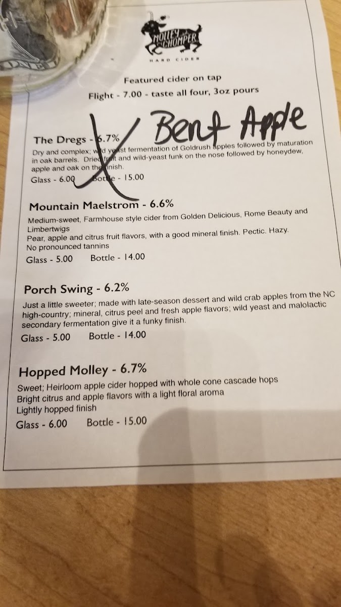 Welcome to Molley Chomper Hard Cider, a hidden gem nestled in the heart of Lansing, North Carolina. This enchanting cidery invites you to explore a creative menu featuring unique flavors crafted from local ingredients. With standout offerings like the Waterfall Farm Maple and the Stunt Pumpkin, each sip tells a story of regional heritage and artisanal passion.